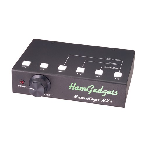 Six multi-color, LED illuminated pushbuttons give instant access to stored messages any of five banks -- that's 30 messages in all, for over 7500 total characters. The LED-backlit buttons change color to tell you whether a message is being sent or recorded. A large, smooth operating, solid aluminum speed control knob can be used to set your operating speed within whatever range you decide. The smooth, sine-wave sidetone lets you hear what you're doing at all times. Of course it can be muted, or turned up for room-filling sound ideal for code training and practice sessions. And commands to change options and messages can be sent from your paddle, or plug into your computer for easy, text-based setup!